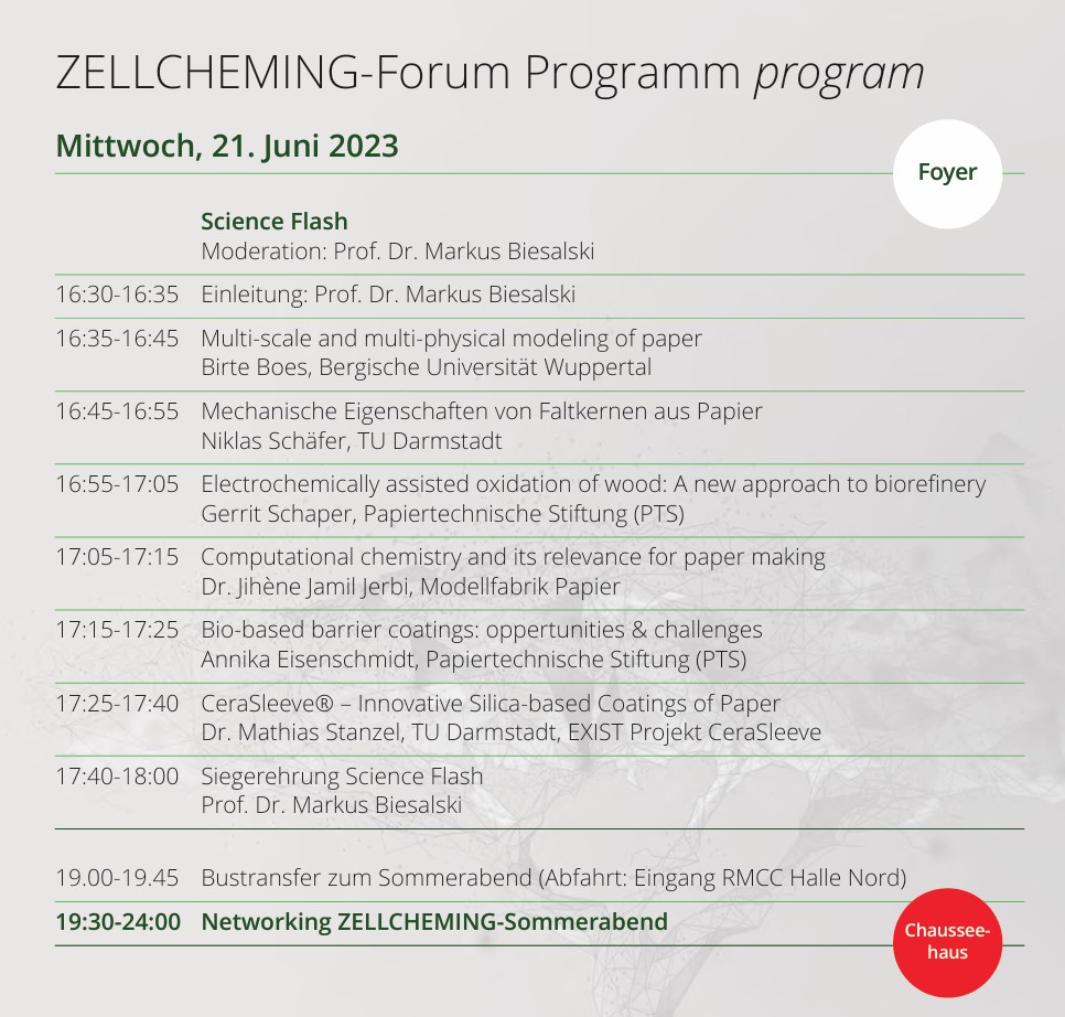 Beim Science Flash auf der ZELLCHEMING Expo 2023 in Wiesbaden überzeugte unsere Kollegin Jihène Jerbi mit einem spannenden Beitrag über die Anwendungsmöglichkeiten von Computational Chemistry in der Papierforschung – und gewann den ersten Preis des Wettbewerbs.